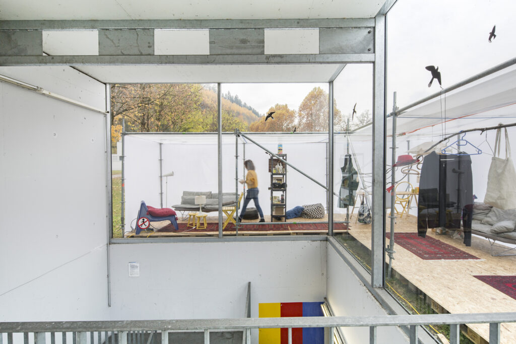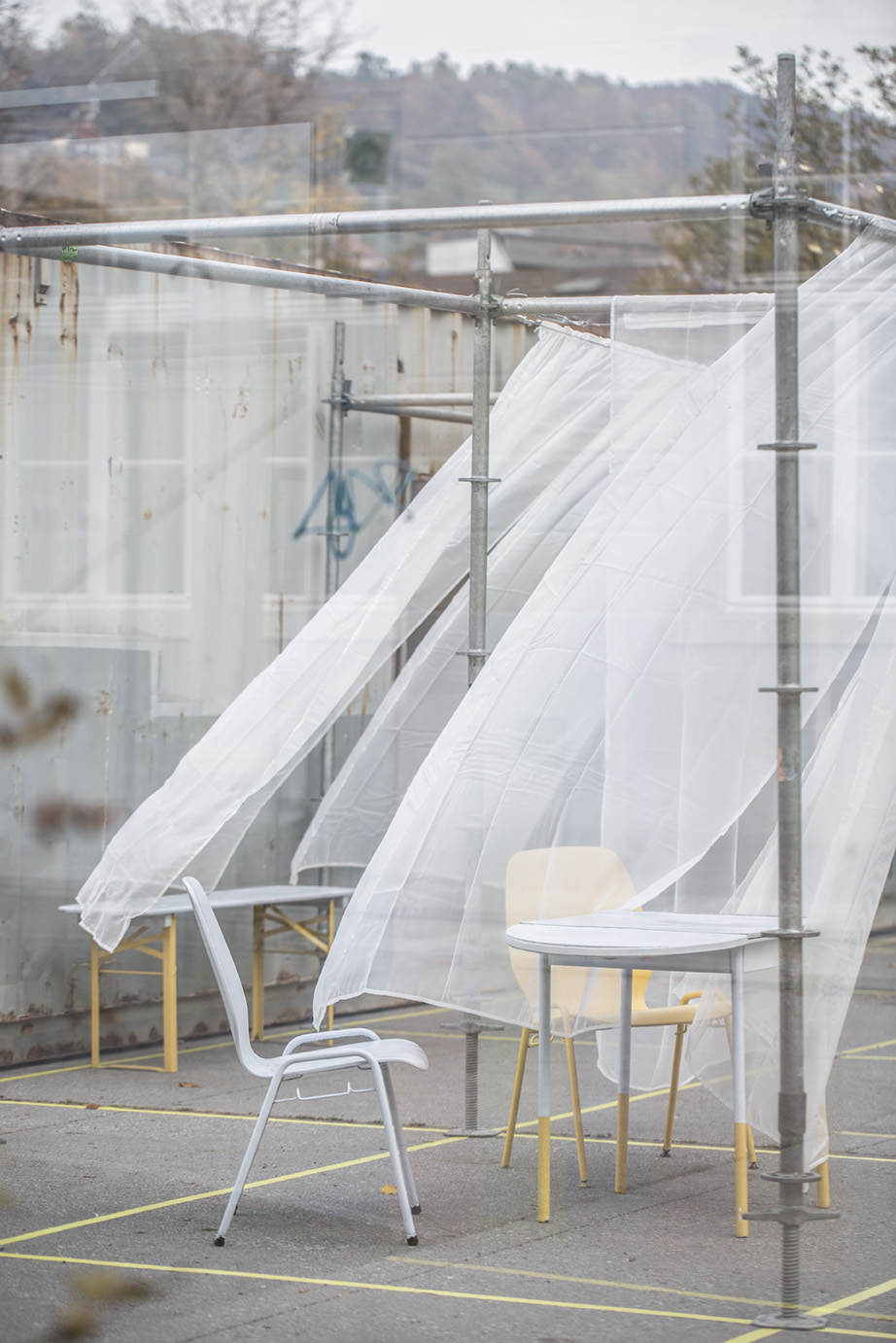 Die An-eck-Stube ist ein Raum, der Menschen zusammenbringt. Sie lädt ein, kurz innezuhalten, ins Gespräch zu kommen oder einfach den Moment zu genießen. An den Aufgang der Tiefgarage im Reichenfeld angedockt , verschmelzen in ihr Innen- und Außenraum. Schutz und Offenheit gehen hier Hand in Hand. Weiche Stoffe und einfache Materialien schaffen eine ruhige, einladende Atmosphäre. Mit Möbeln, die Geschichten tragen, und kleinen Gesten wie einem warmen Tee und ein paar Apfelspalten entsteht ein Ort, der sich ganz der Begegnung widmet. Transparente Vorhänge und Plateaus im Außenraum schaffen eine sanfte Verbindung zwischen Architektur und Natur und laden dazu ein, den Raum aus unterschiedlichen Blickwinkeln zu erleben. Die Stube war Teil der POTENTIALe und zugleich einer Raumentwicklungsstudie für das Reichenfeld. Sie diente als Treffpunkt für Workshops und als offener Raum für Austausch und Diskussionen, um gemeinsam über die Nutzung und Gestaltung des Reichenfelds nachzudenken. Als temporärer Raum zeigte sie, wie wenig es braucht, um Begegnungen zu fördern, Gemeinschaft zu stärken und neue Ideen für einen lebendigen öffentlichen Raum zu entwickeln.