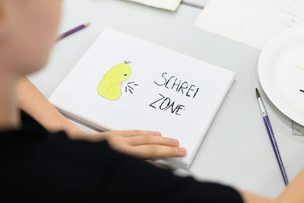Besonders spannend waren jene Orte, die für die Kinder nicht selbsterklärend wirkten. Stellen, an denen sie zögerten, suchten oder nach Orientierung fragten. Genau hier setzten wir gemeinsam an: Die Kinder entwickelten eigene Schilder für diese Bereiche. Mit Zeichnungen, Symbolen und Farben überlegten sie, wie man verständlich und freundlich zeigen kann, wohin der Weg führt oder was dieser Ort brauchen würde, damit man versteht was er uns sagen will.