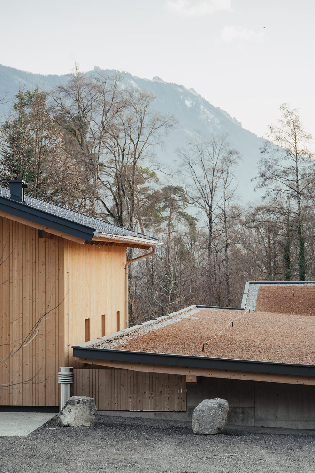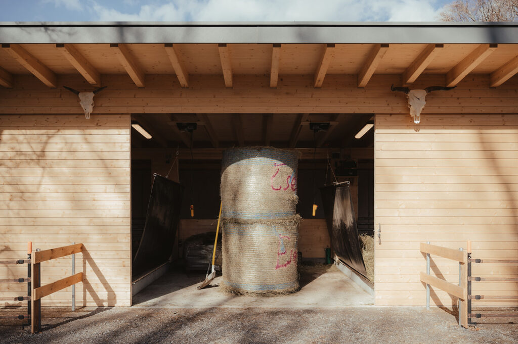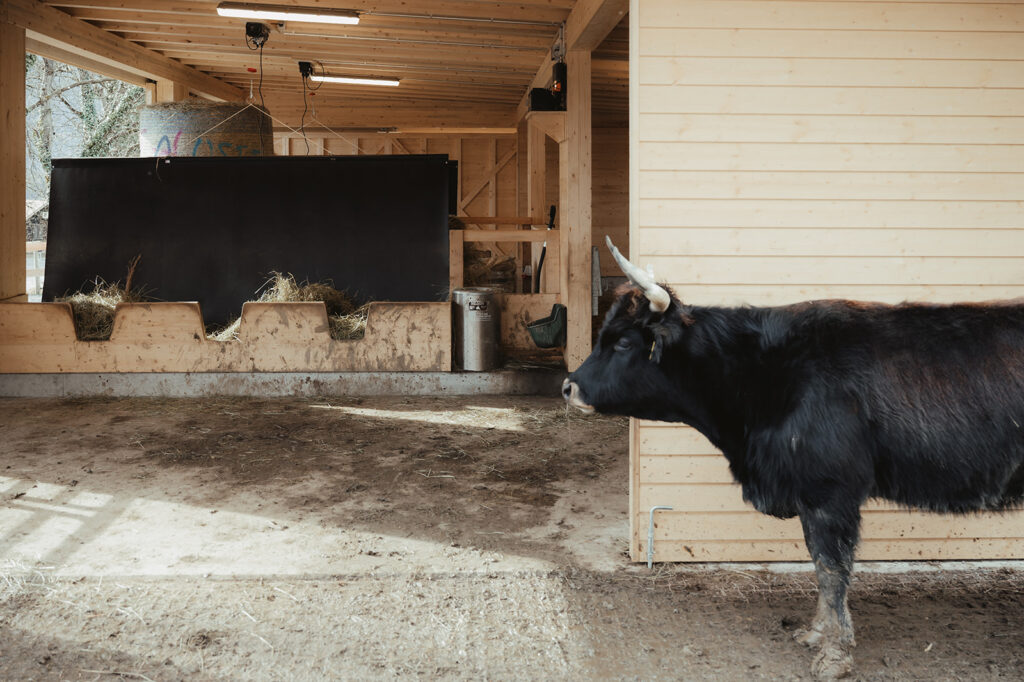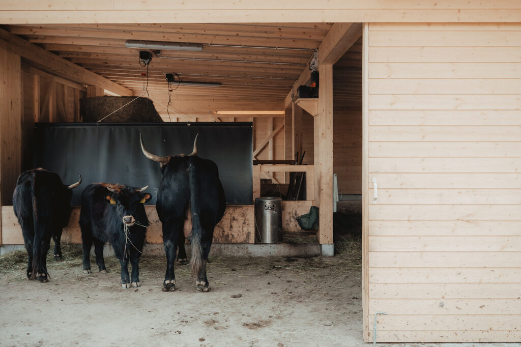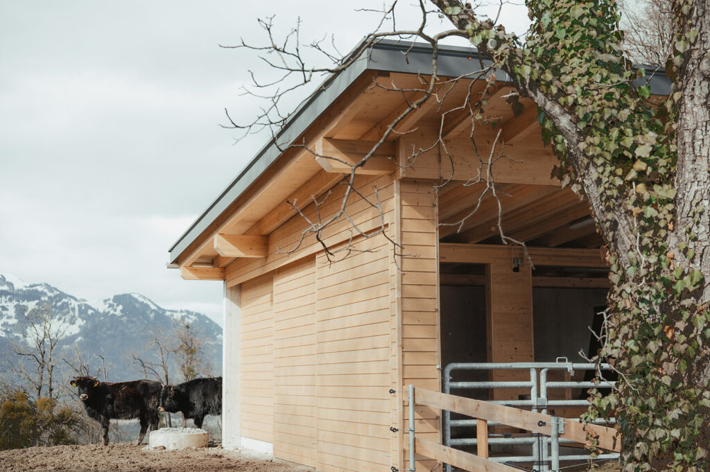 Der Stall für die Ochsen im Wildpark Feldkirch ist als schlichter, funktionaler Bau konzipiert. Gestalterische Entscheidungen folgen dem Maßstab der Tiere, der Nutzung und dem Ort, nicht einer expressiven Formgebung. Materialität und Konstruktion sind klar und robust gehalten. Der Bau fügt sich zurückhaltend in die Landschaft des Wildparks ein.
